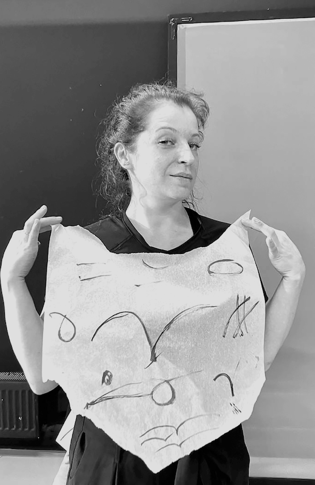 Первый этап — мягкая практика танца, упражнения, направленные на обозначение и ощущение своего тела в пространстве. Вместе с хореографом Ксенией Петренко участники изобретают индивидуальную траекторию и форму движения. Второй этап — терапевтическая каллиграфия, создание символа своего тела. Участники вырисовывают, выписывают свой собственный знак с художницей Александрой Шелемовой из команды Black.Form.
